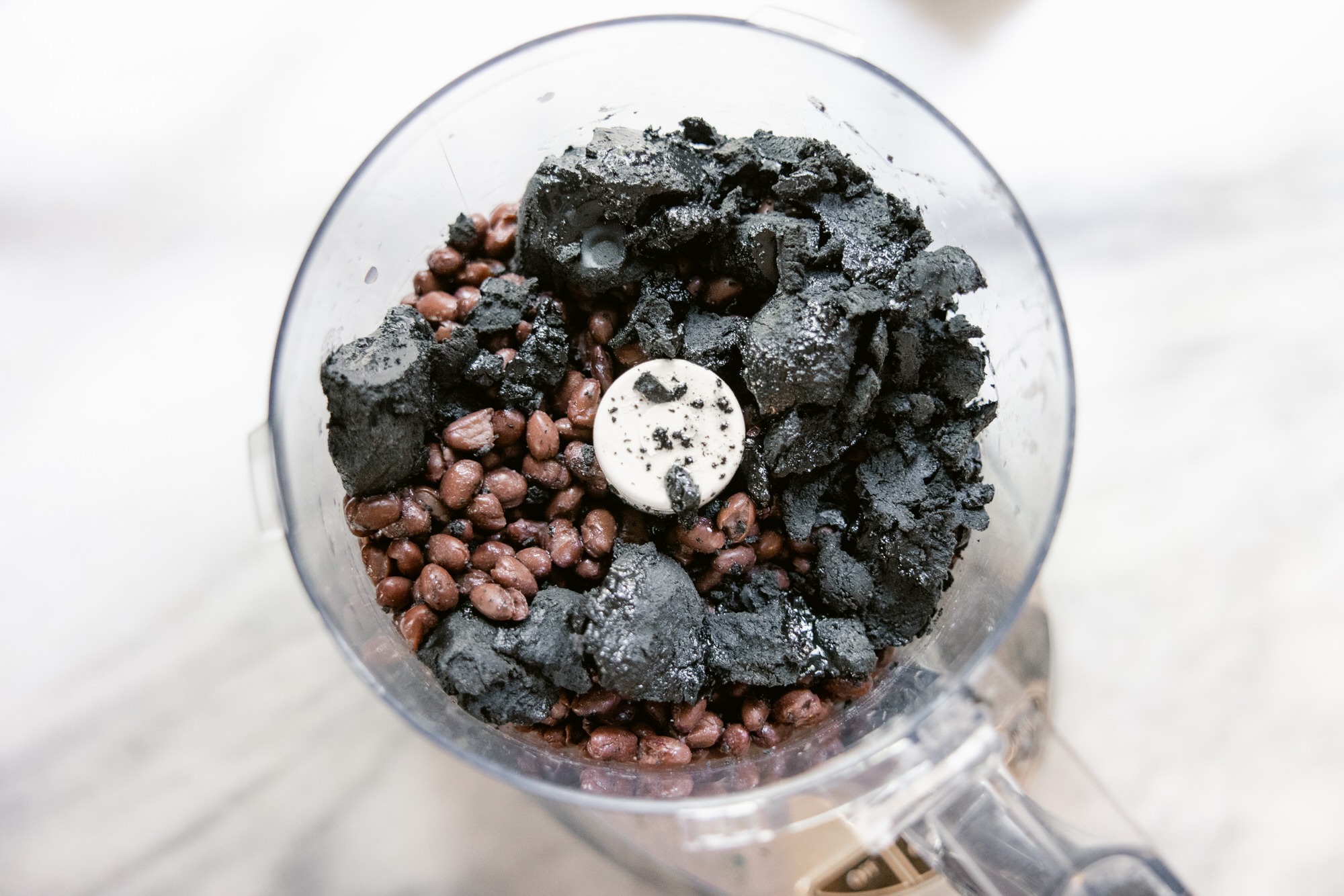 Combine black beans, tahini, lemon juice, zest, garlic, honey, cumin, and salt in a high-powered blender.